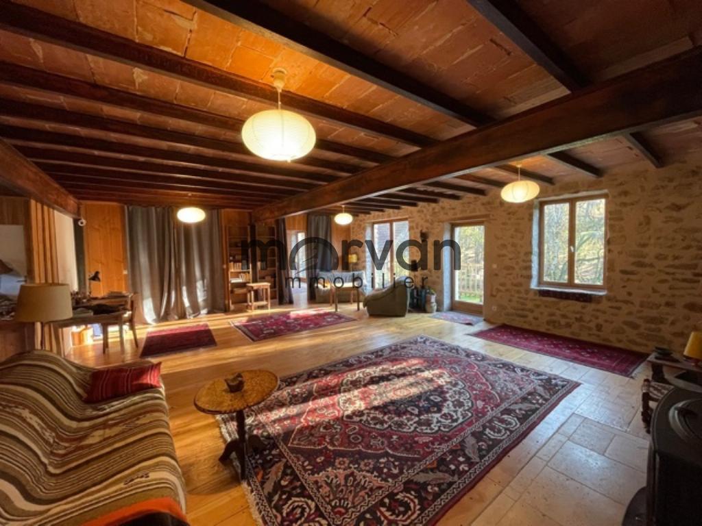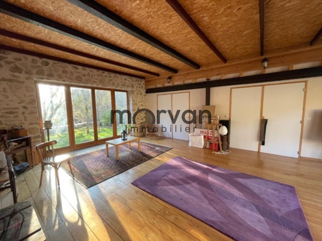" UN EMPLACEMENT A PROXIMITE DE LA RIVIERE DU CHALAUX ET EXTREMEMENT PRIVILEGIE POUR CET ENSEMBLE DE BATIMENTS COMPRENANT Une maison principale édifiée partie sur cave comprenant: au rez-de-chaussée une entrée, une cuisine ouverte sur un espace de vie de 100m2 avec parquet massif et grandes baies vitrées , trois chambres, une salle de jeux, deux salles d'eau, 2WC, un local lingerie. Hangar bardé en bois de 220 m2 à la suite.