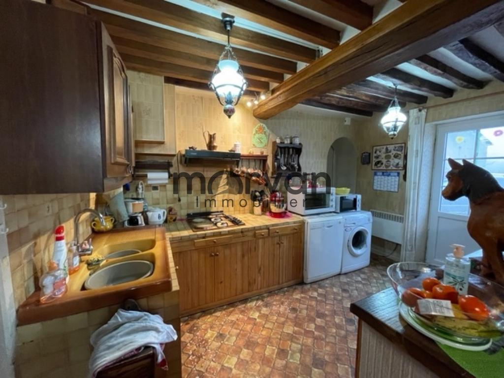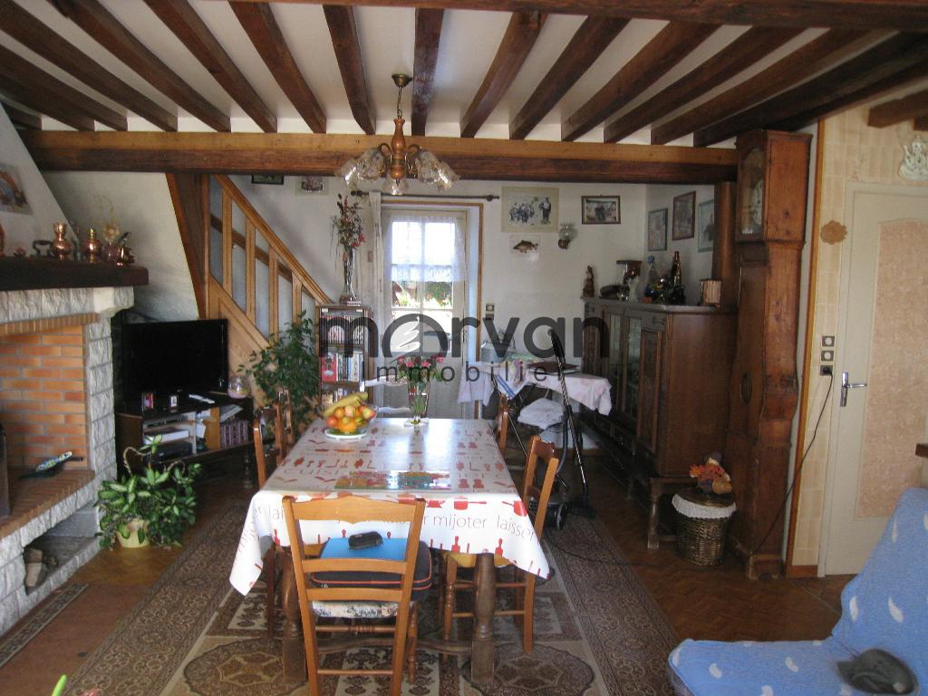 " Une ancienne fermette comprenant: un séjour une salle à manger avec belle cheminée à foyer ouvert, une cuisine intégrée au séjour, une salle de bains, WC.