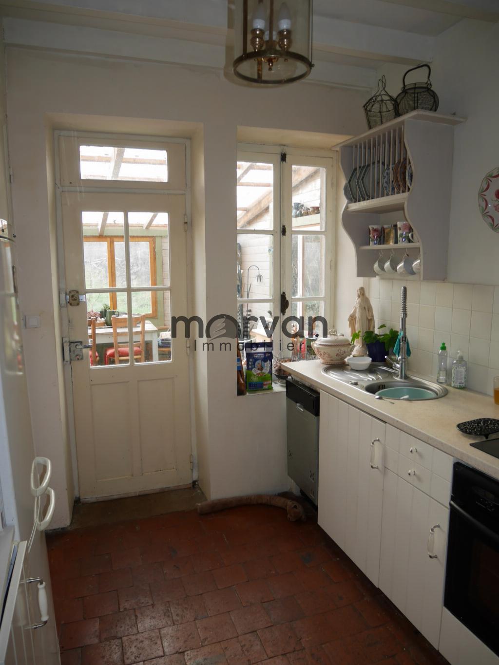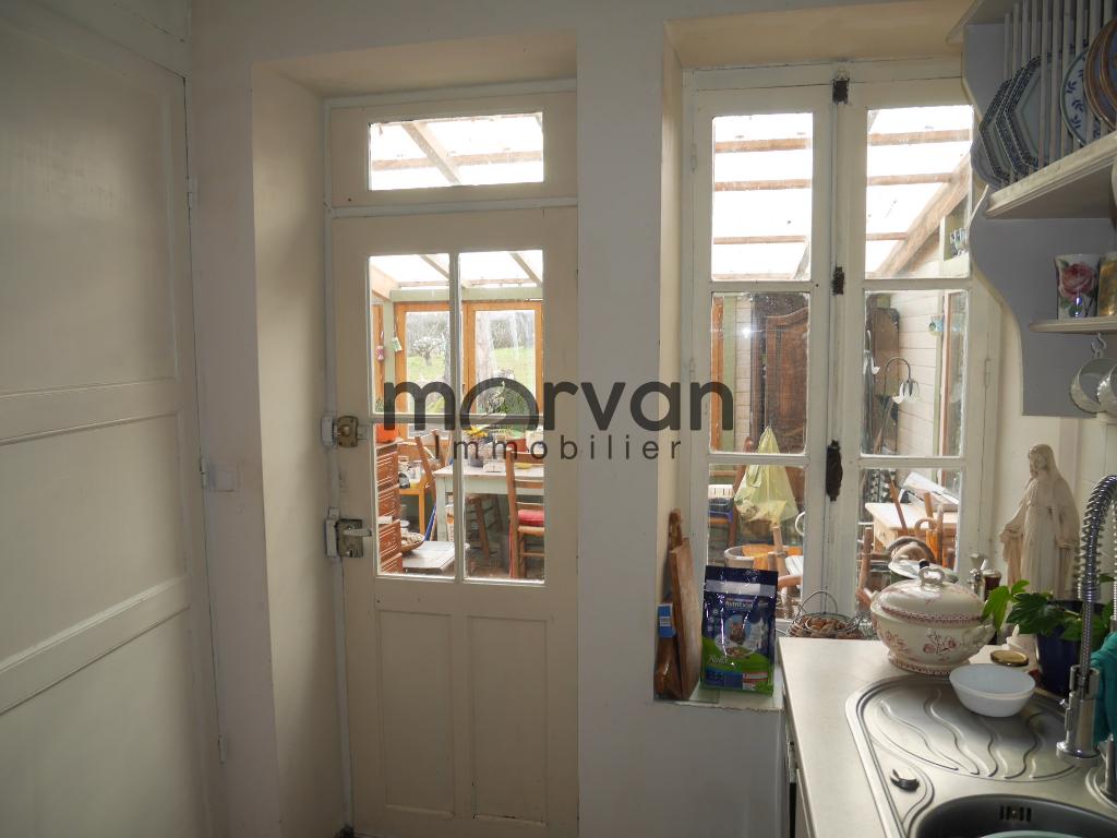 Cuisine de 8m2 avec accès à l'auvent de 19m2 salle de bains avec W.C en bas de 7m2.