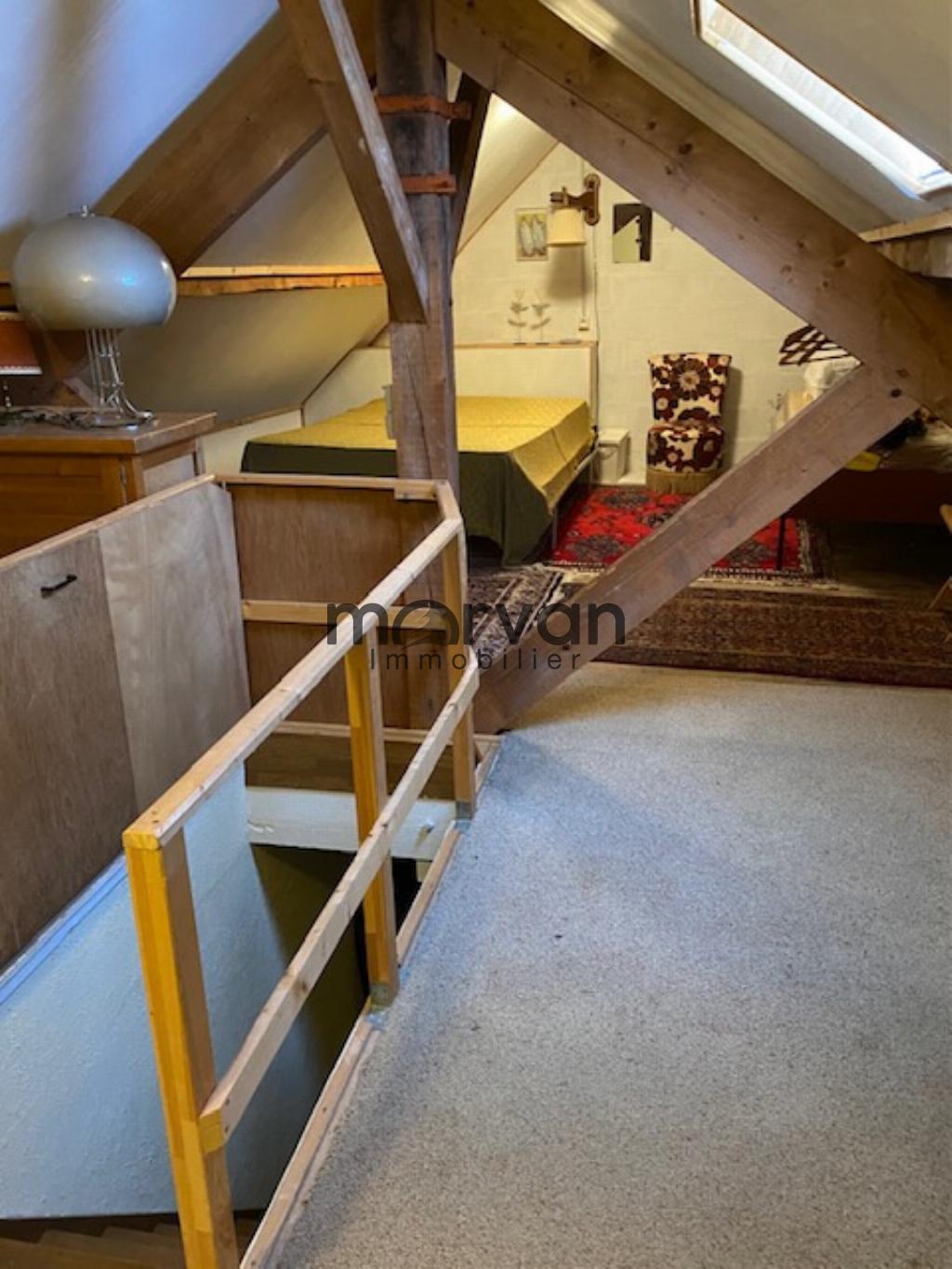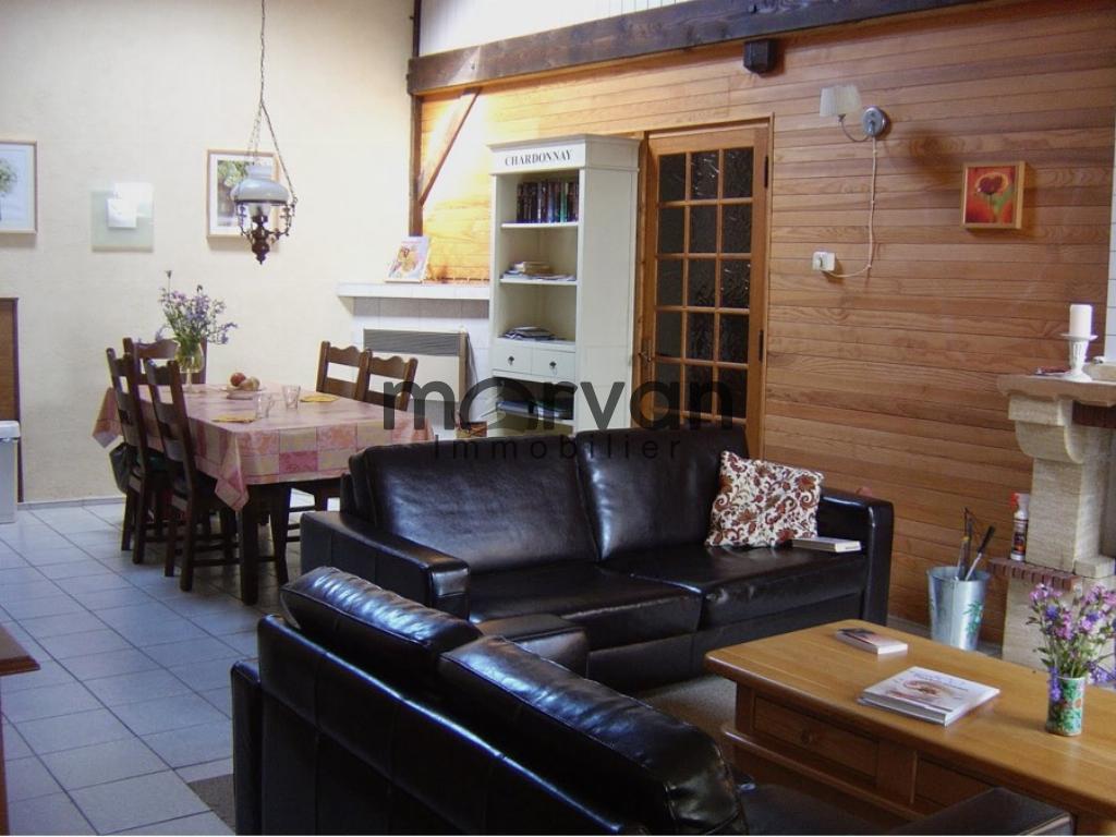 Au premier étage: un grand séjour avec coin cuisine, cheminée avec insert, sortie vers la terrasse côté jardin.