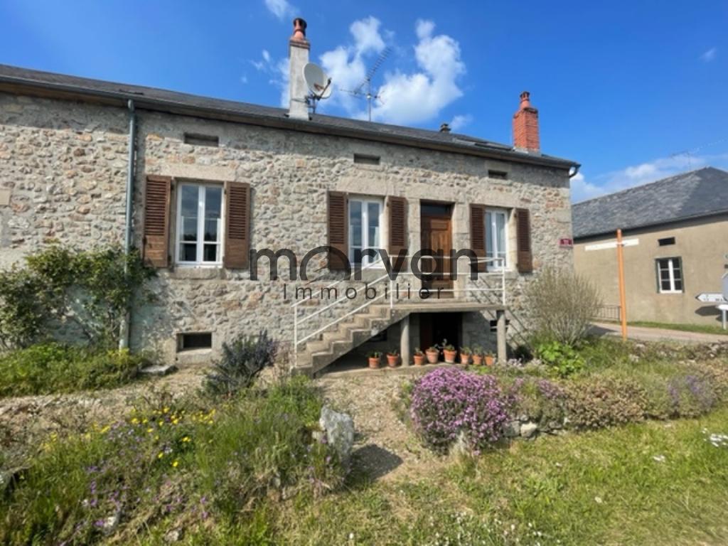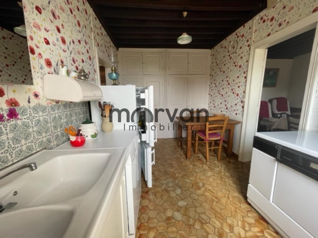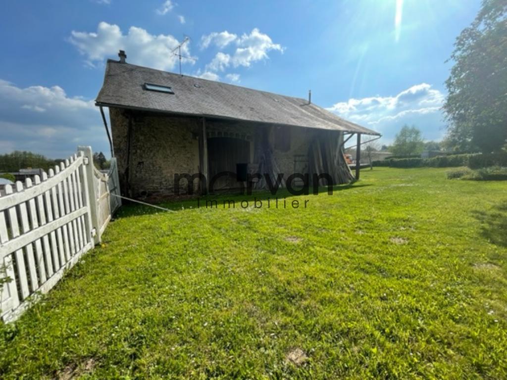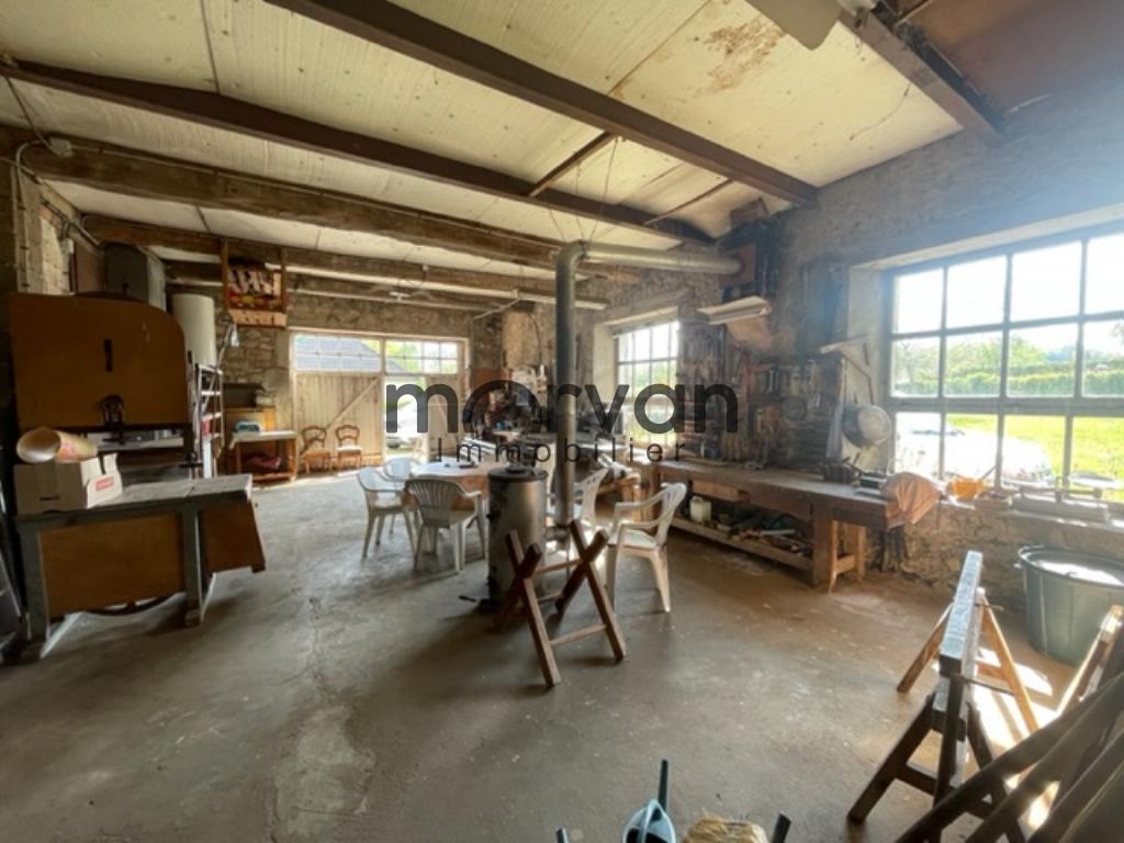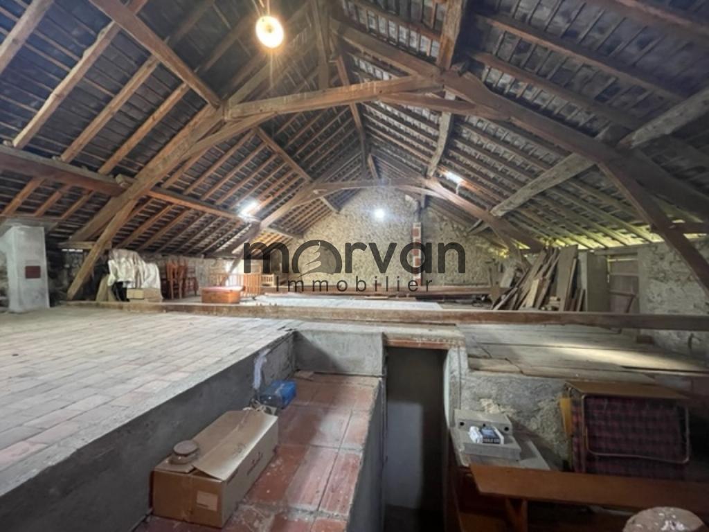 " Maison ancienne élevée partie sur caves comprenant 5 pièces sde avec wc : un séjour et quatre chambres, cuisine séparée, belles dépendances à aménager dans les combles et une grande surface de grange et garage (atelier)