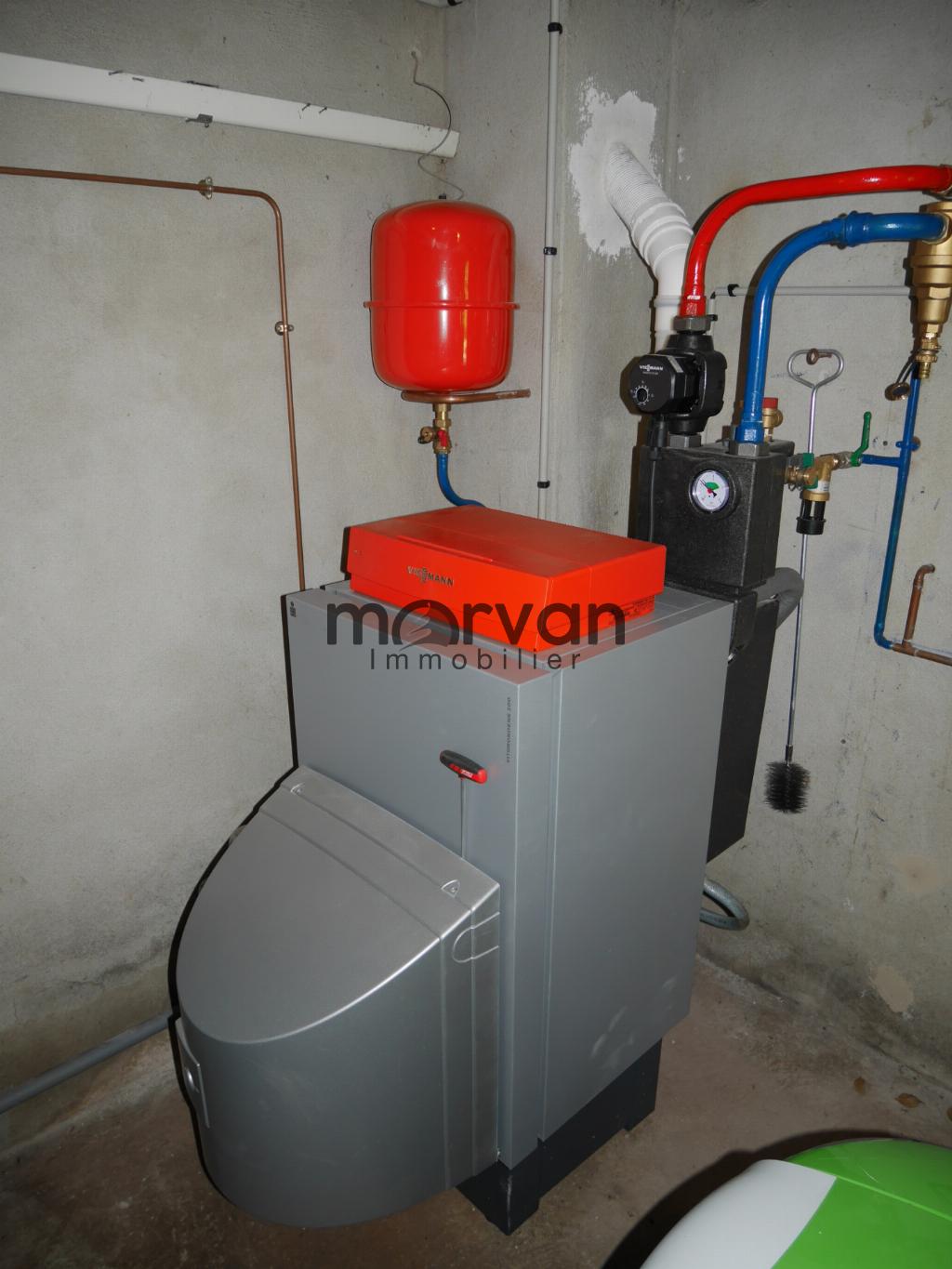 Un pavillon des années 70, élevé en partie sur sous-sol avec garage et chaufferie, CC au fioul, chaudière neuf de 2021 'Viessmann', deuxième partie du sous-sol: atelier buanderie.