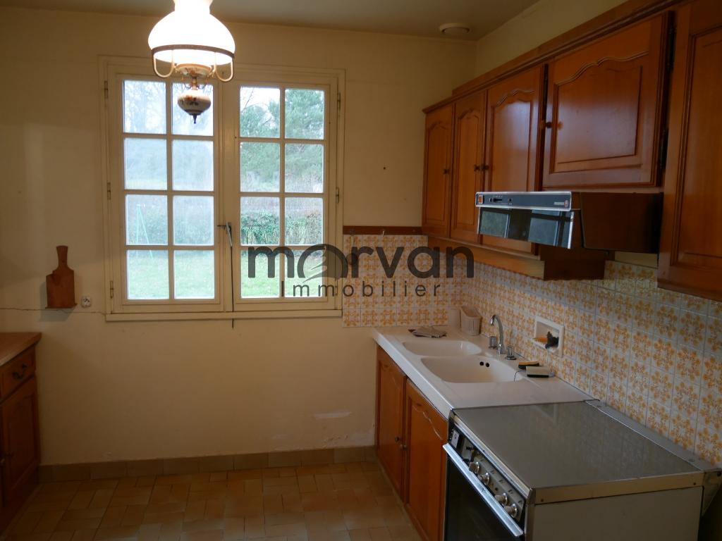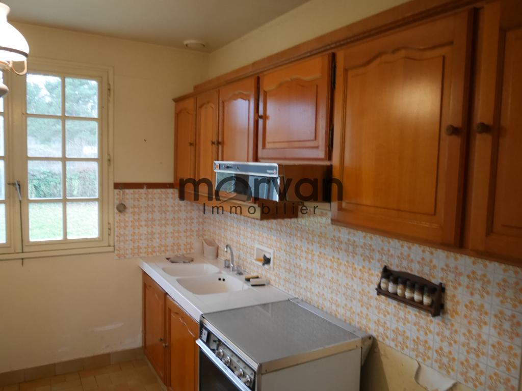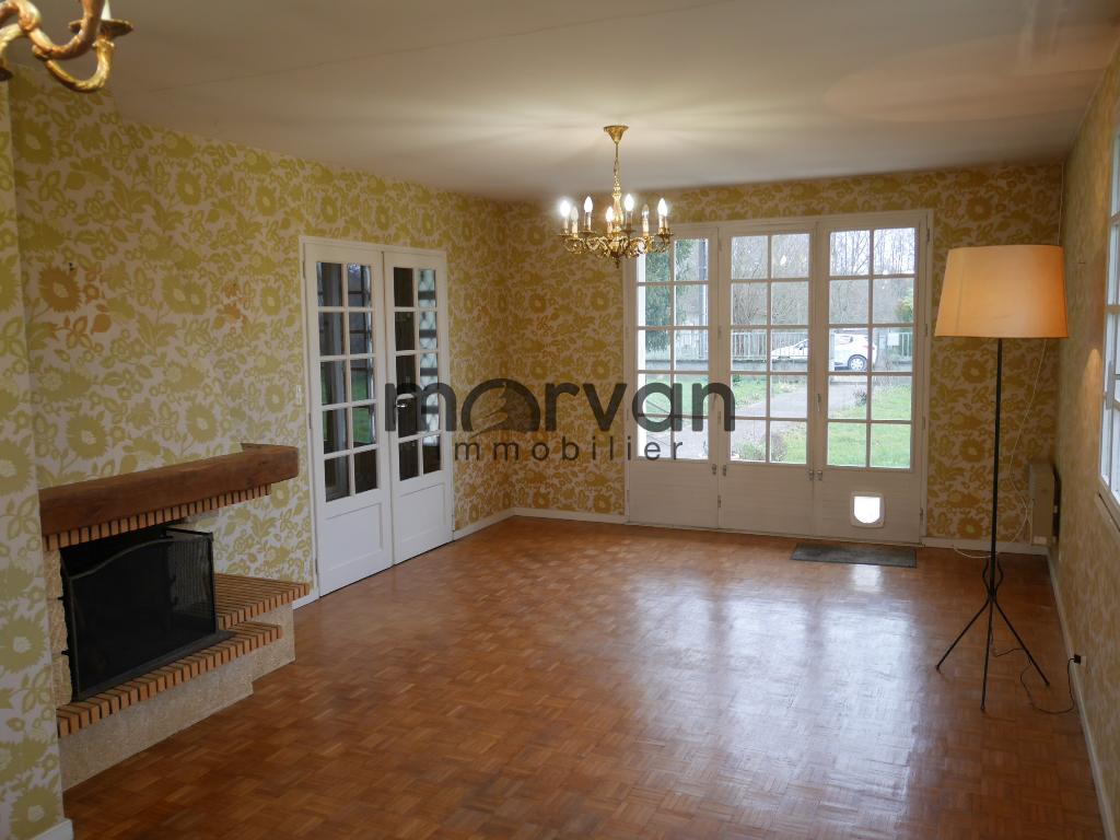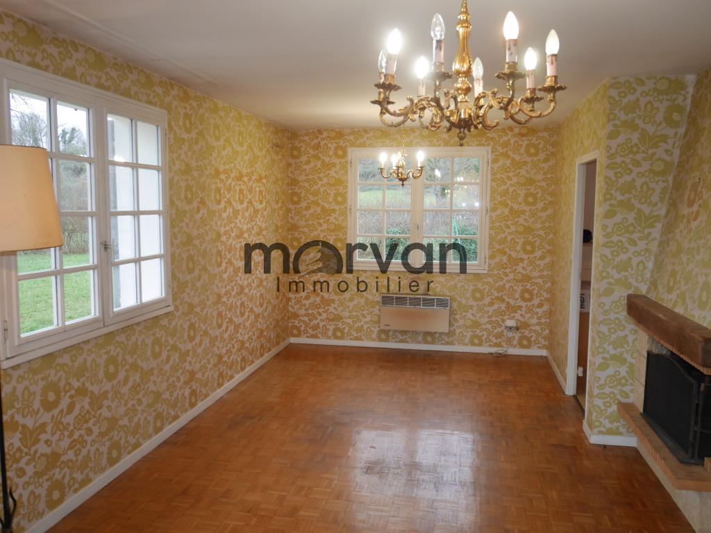 un séjour salon de 25m2 avec cheminée (portes fenêtres donnant sur terrasse), Cuisine de 9m2, deux chambres et une salle de bains, W.C.