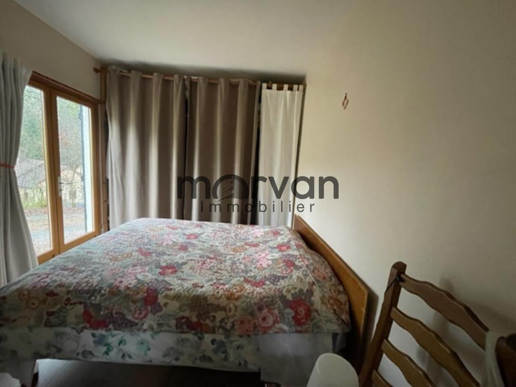 " Maison des années 80 à structure bois comprenant de plain-pied: une entrée, une belle pièce de séjour ouvrant sur terrasse, coin scuisine ouvert sur le séjour, deux chambres, salle d'eau avec wc. Dépendances sur le terrain: deux remises et une piscine gonflable hors sol