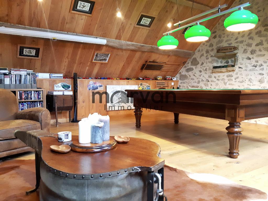 Au premier étage: une chambre et un salon salle de billard avec une cheminée ouverte. Accès à une terrasse d'environ 18m2.