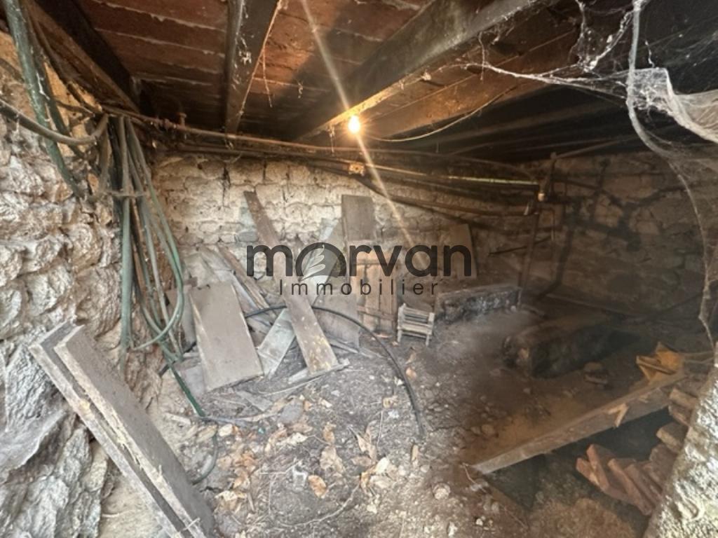 " Un corps de batiments entièrement à restaurer comprenant une maison ancienne élevée partie sur cave: deux anciennes cuisines, deux chambres, une salle d'eau WC, un dégagement.