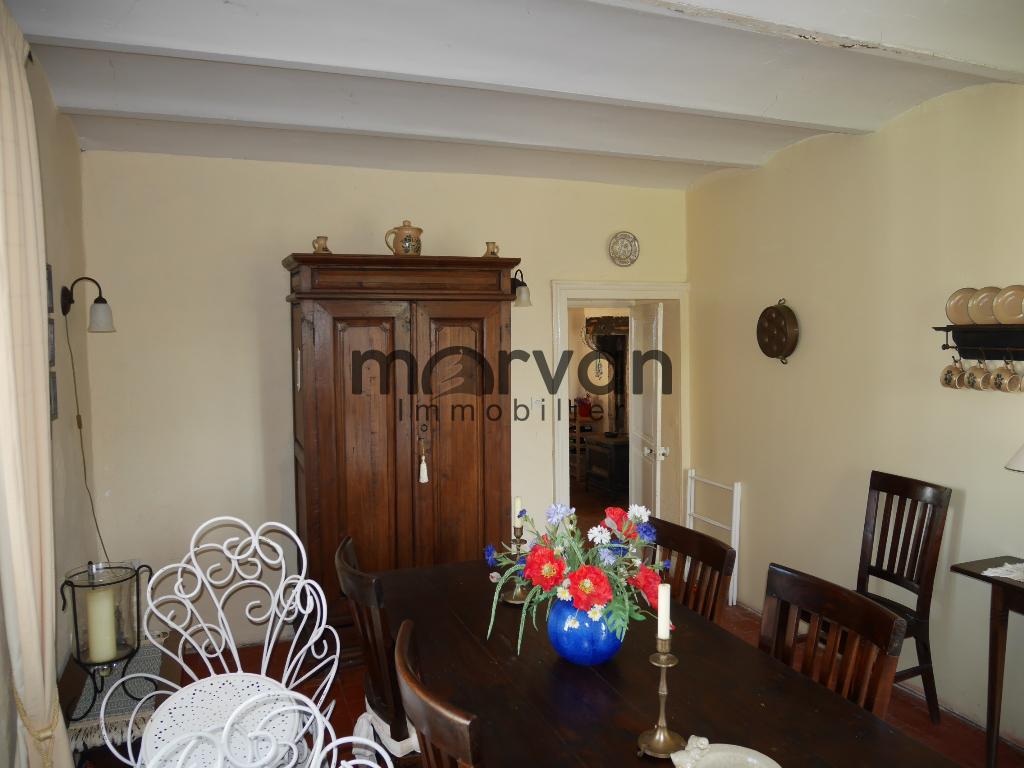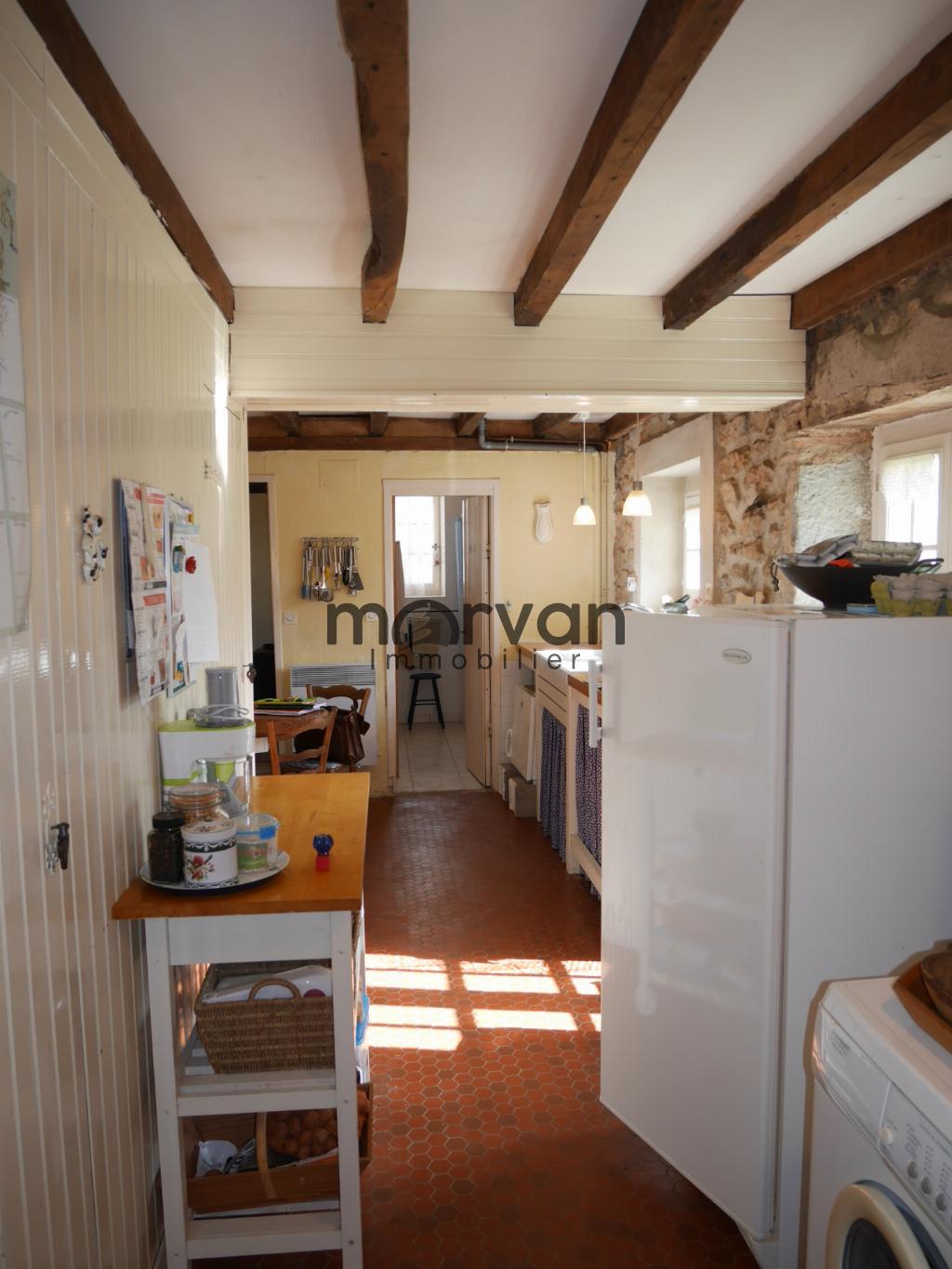 " En exclusivité dans notre agence,maison principale de 83m2 élevée en partie sur cave voûtée, entrée de 2m2 et W.C de 2m2, cuisine de 13m2 avec tomettes au sol, Salle d'eau de 3m2, salon de 16 m2 avec tomettes au sol, plafond poutraison peint en blanc,porte ouvrant vers une terrasse et cheminée avec poêle à bois 'Godin'.