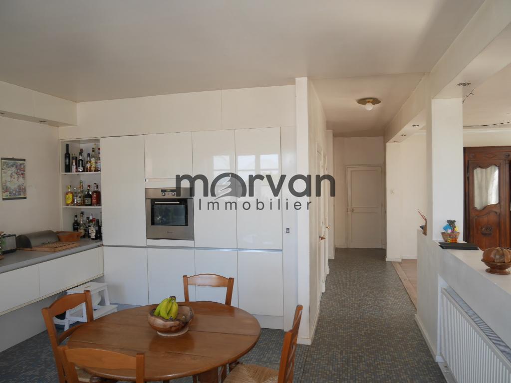 La cuisine de 12m2 s' ouvre sur une grande pièce de vie avec coin salon de 45m2 et coin bureau de 14m2.