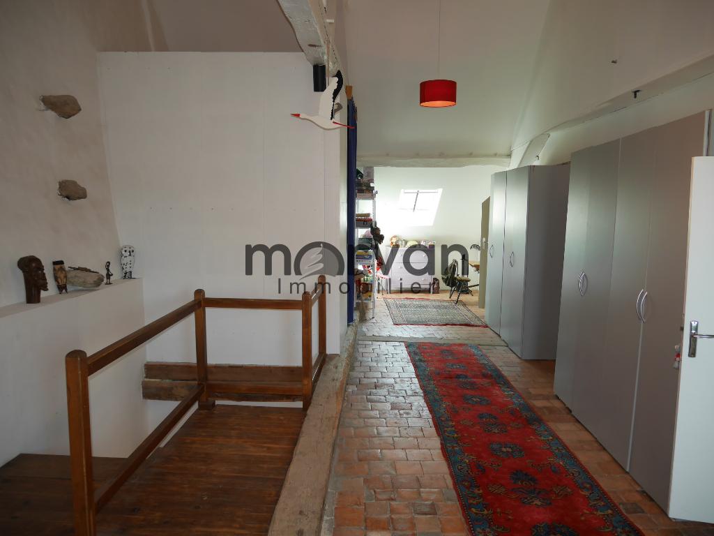 Au deuxième étage, ancien grenier avec tomettes au sol, transformé en grand palier de 47m2 qui déssert deux chambres de 9m2, une salle d'eau avec W.C., une alcôve avec 4 couchages et une salle de sport.
