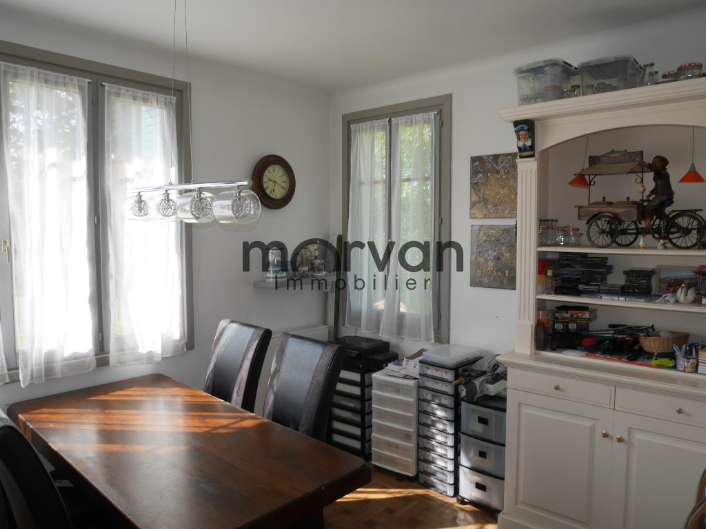 Salle à manger de 10m2 avec vue sur le jardin et côté rue, parquet en chêne massif au sol.