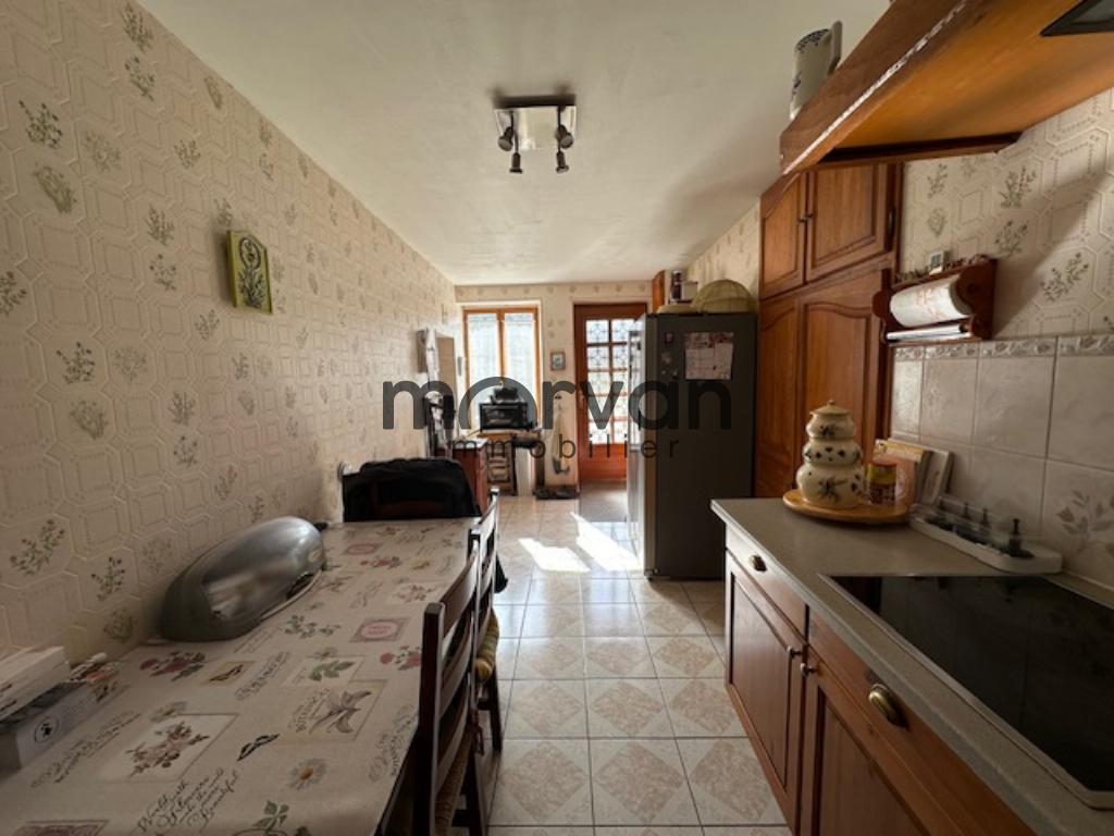 " Une maison d'habitation élevée en partie sur cave voûtée et atelier comprenant au rez-de-chaussée: une cuisine aménagée, une salle à manger salon avec cheminée équipée d'un insert granulés, deux chambres, un cellier, une salle d'eau, WC. Terrasse devant exposée plein sud. Grenier dessus aménageable. Petits toits en pignon.