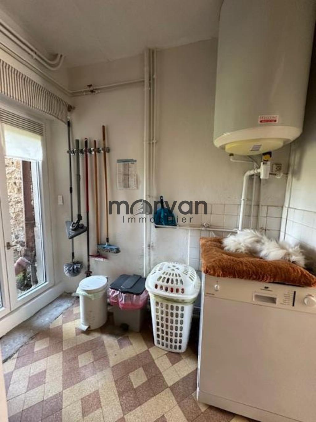" Une maison d'habitation mitoyenne élevée partie sur cave comprenant au rez-de-chaussée: un grand séjour avec cheminée, une cuisine, un salon ouvrant sur terrasse et très jolie vue, une salle d'eau et WC (toilettes sèches). Au premier étage: quatre chambres, une salle de bains, WC séparés et petit grenier en sous pente pour rangement. Un garage en face. Dépendance: grenier, chaufferie, un petit local et cave.