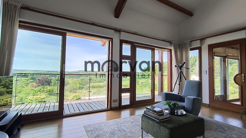 " En exclusivité dans notre agence, belle maison d'architecte sur un jardin paysagé de 3.800 m2 avec une superbe vue sur les collines du Morvan et sur l'étang dans la vallée,proche de la sortie de l'autoroute A6 et d'Avallon ville tous commerces et gare SNCF.