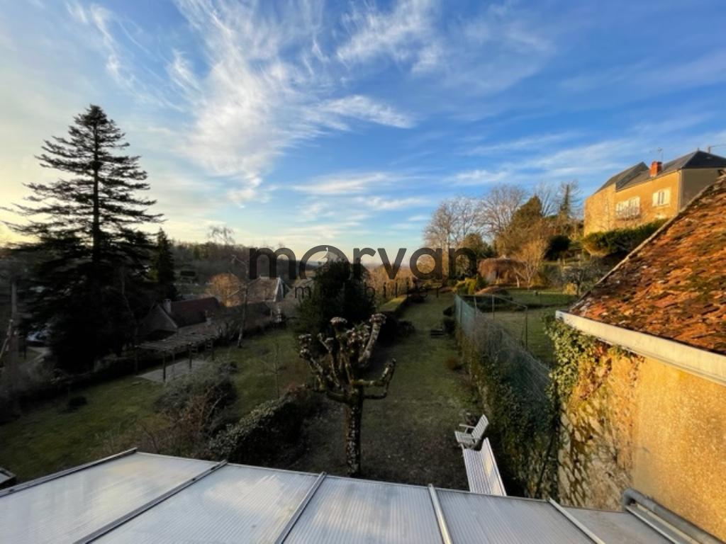 Au deuxième étage mansardé : une chambre de 14, une salle d'eau avec WC, pièce de 4m2 possibilité chambre enfants ou couchage d'appoint . Véranda donnant sur le jardin. Courette sur la rue et jardin en espaliers sur l'arrière de 692m2 avec vue sur les toits de lormes. toiture refaite à neuf en 2018 et double vitrage à l'exception de deux fenêtres.