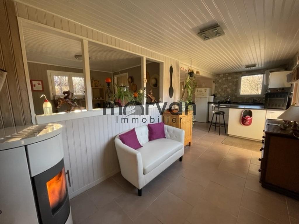 " A proximité du lac de chaumeçon une petite maison entièrement bardée en bois et isolée élevée sur terre plein comprenant au rez-de-chaussée: une cuisine ouverte sur la salle à manger, un salon, une chambre, une salle d'eau avec WC.