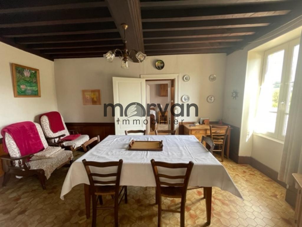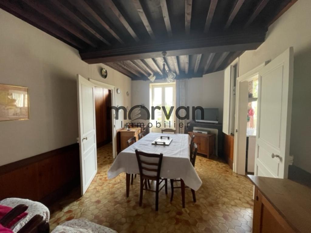 " Maison ancienne élevée partie sur caves comprenant 5 pièces sde avec wc : un séjour et quatre chambres, cuisine séparée, belles dépendances à aménager dans les combles et une grande surface de grange et garage (atelier)