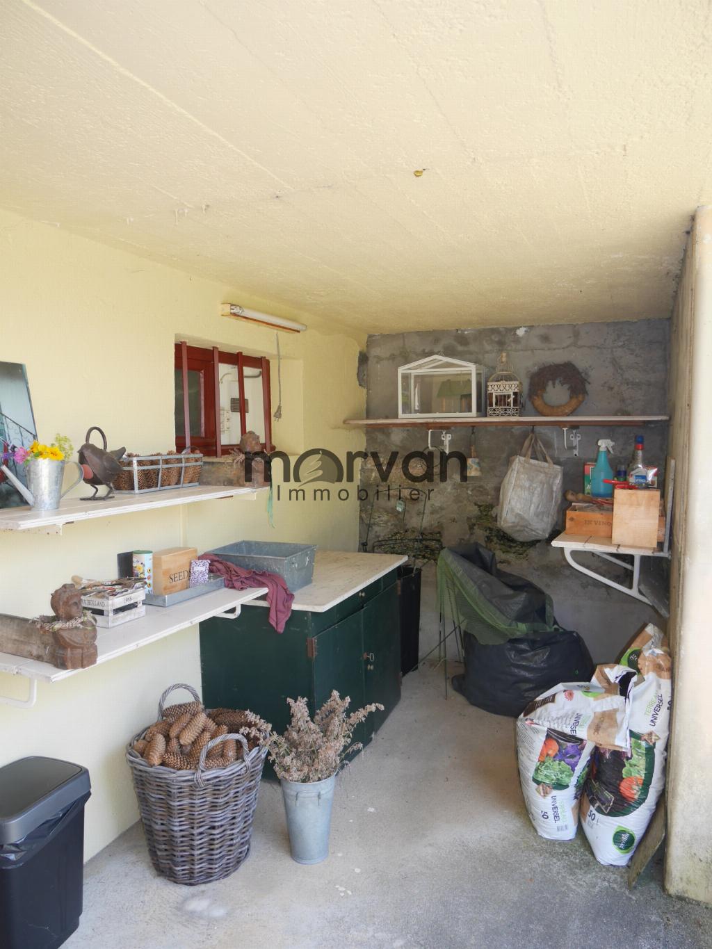 Un pavillon des années 70, élevé en partie sur sous-sol avec garage et chaufferie, CC au fioul, chaudière neuf de 2021 'Viessmann', deuxième partie du sous-sol: atelier buanderie.