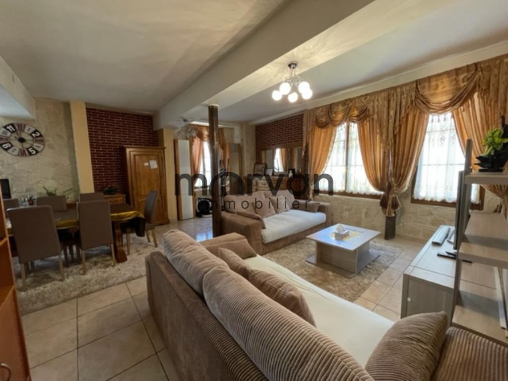 " Une maison d'habitation élevée sur cave comprenant au rez-de-chaussée: un hall d'entrée, un salon salle à manger, une cuisine aménagée et équipée, WC séparés. Cour accessible de la cuisine pour repas en extérieur. Au premier étage: un palier desservant deux chambres, une salle de bains avec WC, une autre pièce et accès au grenier.