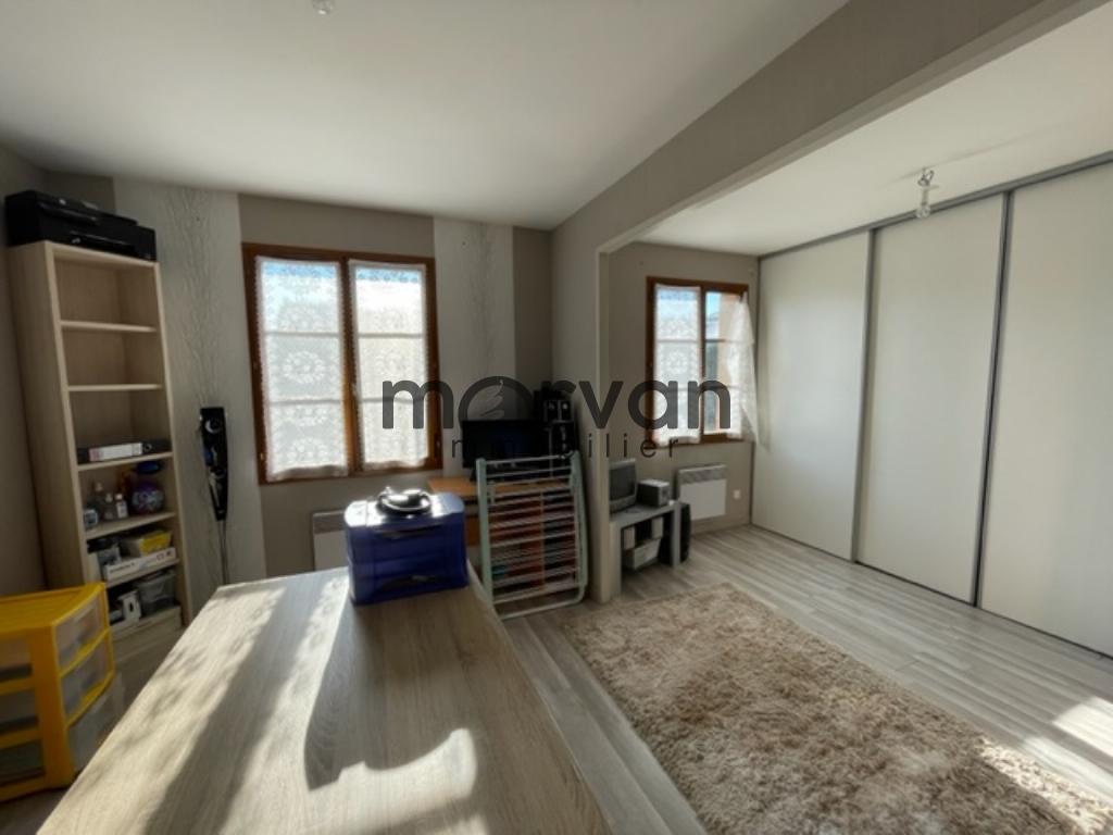 " Un pavillon de plain-pied comprenant un séjour avec cheminée insert ouvrant sur le jardin, deux chambres, cuisine aménagée récente, salle de bains et wc séparés, garage attenant. combles perdus dessus