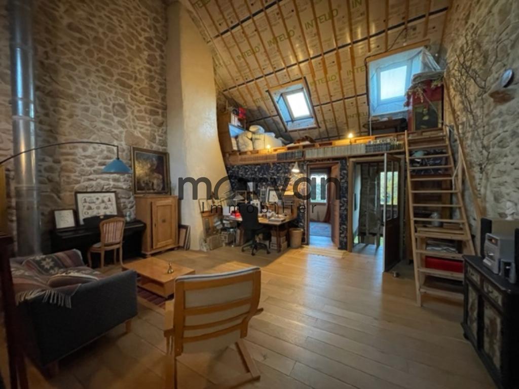 " Belle maison ancienne rénovée à proximité du lac du crescent, comprenant un bel espace de vie salon, salle à manger et cuisine ouvrant sur terrasse (vue imprenable sur les collines du Morvan), salle de bain avec WC, et buanderie. Au premier étage le grenier a été aménagé en salon avec grand volume central et mézzanines sur les côtés, deux chambres, une salle d'eau avec WC, et une pièce à usage de chambre.