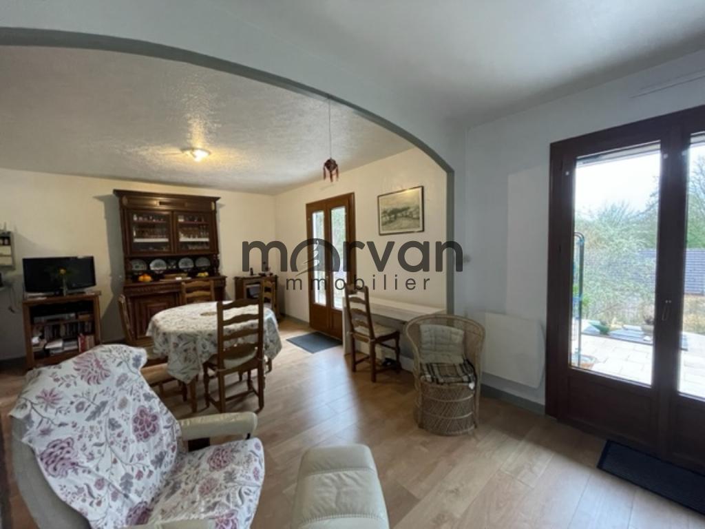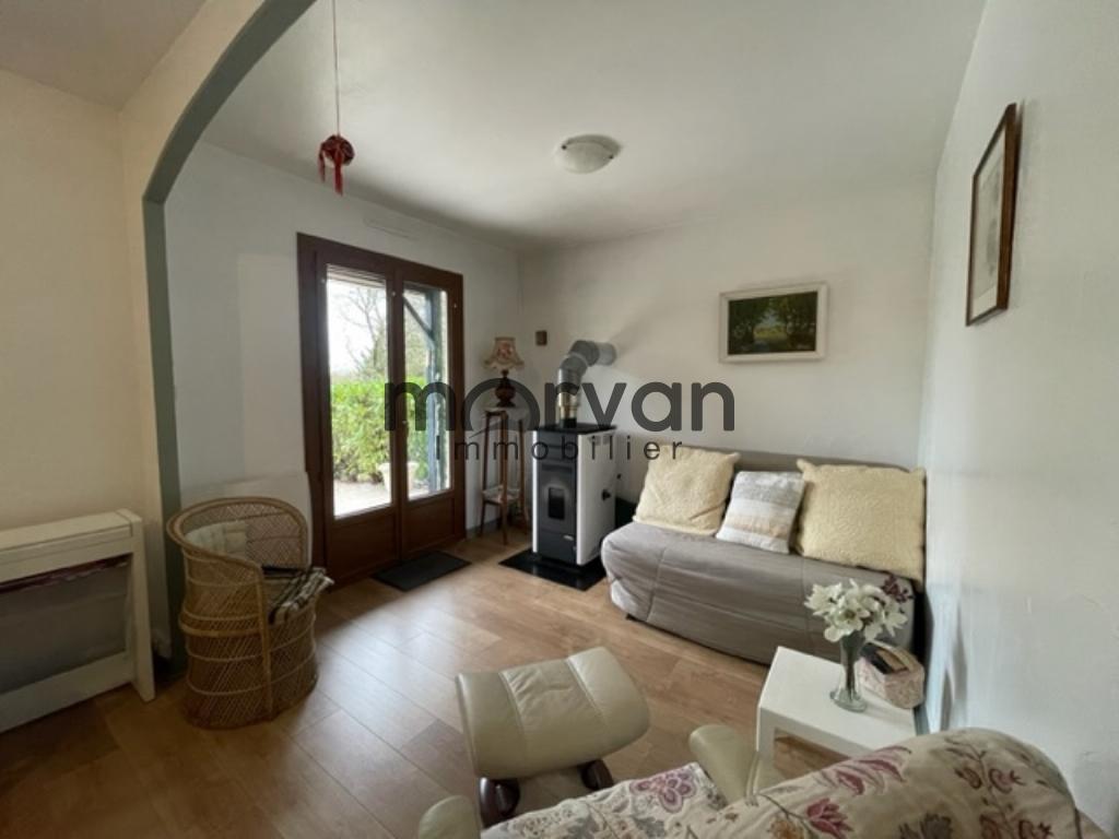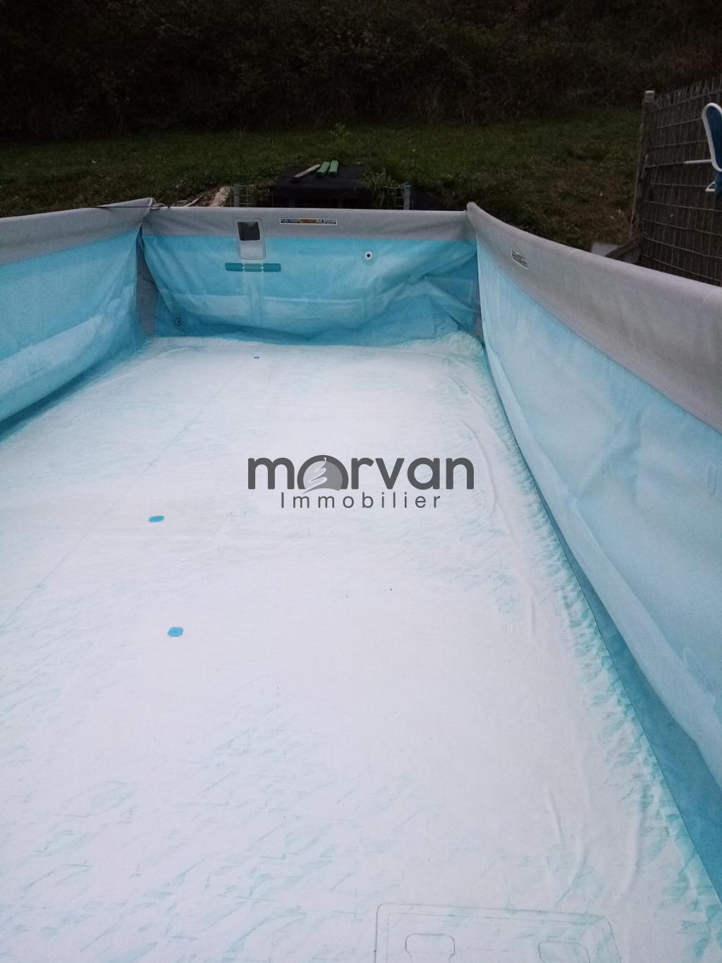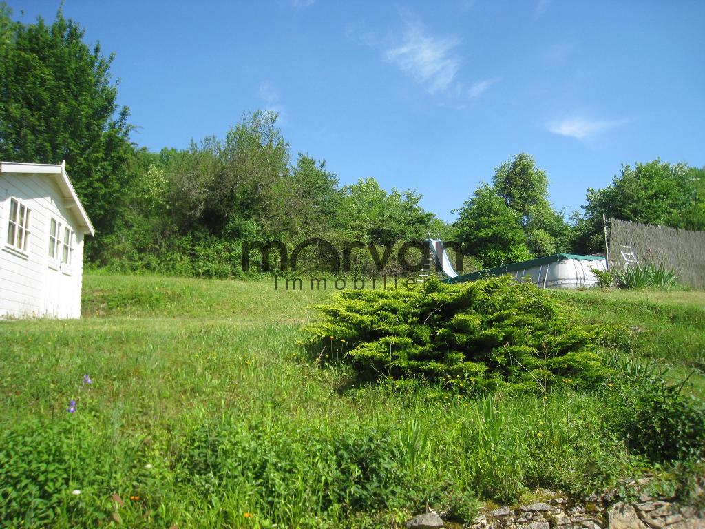 " Maison des années 80 à structure bois comprenant de plain-pied: une entrée, une belle pièce de séjour ouvrant sur terrasse, coin scuisine ouvert sur le séjour, deux chambres, salle d'eau avec wc. Dépendances sur le terrain: deux remises et une piscine gonflable hors sol