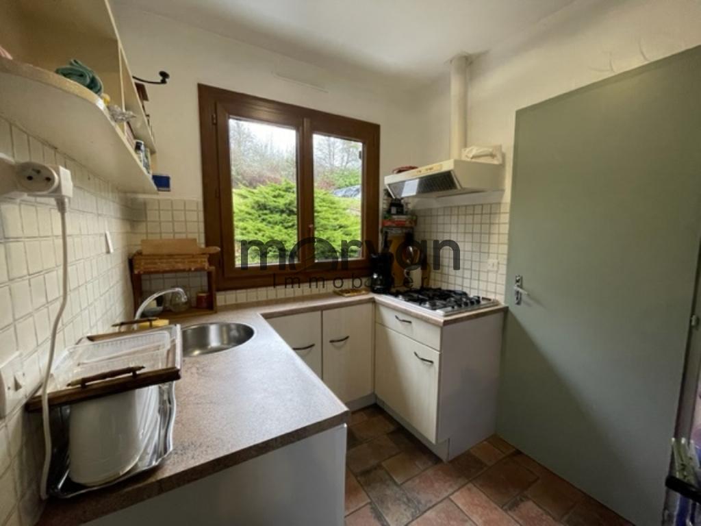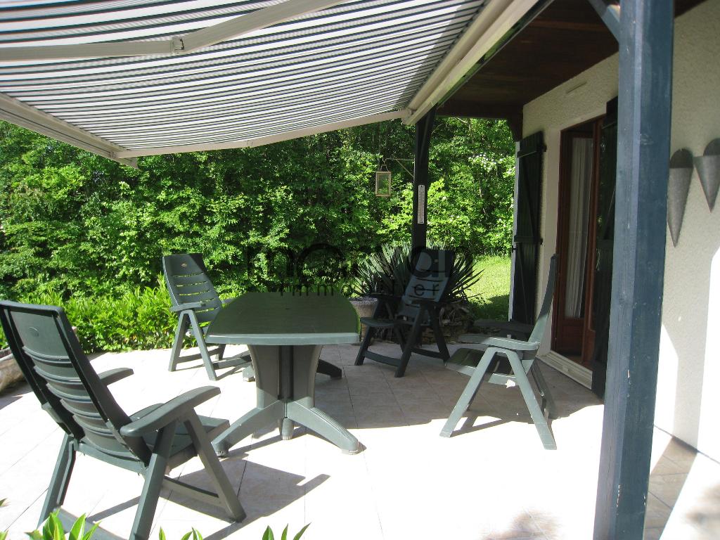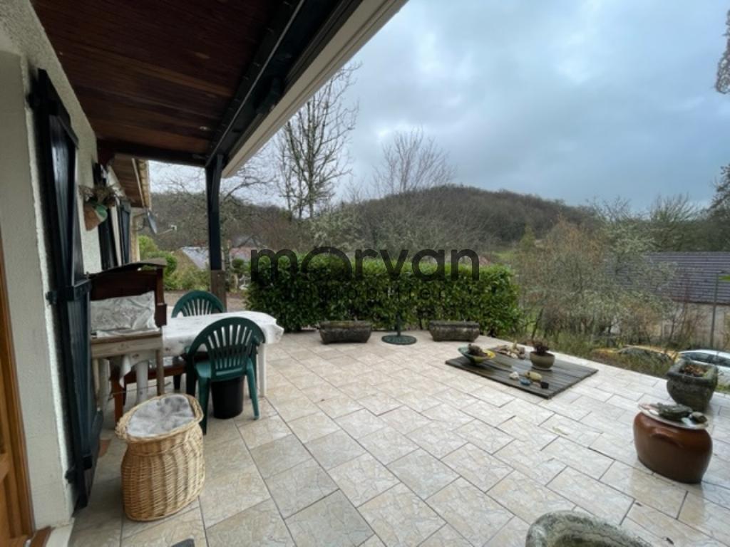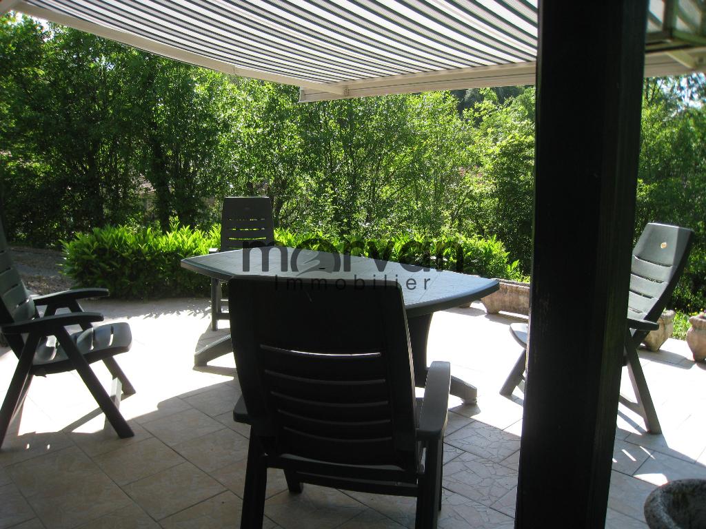 belle vue depuis le terrain (de 1632 m2) et la maison, situation calme et en hauteur. couverture tuiles, chauffage poêle à granulés.