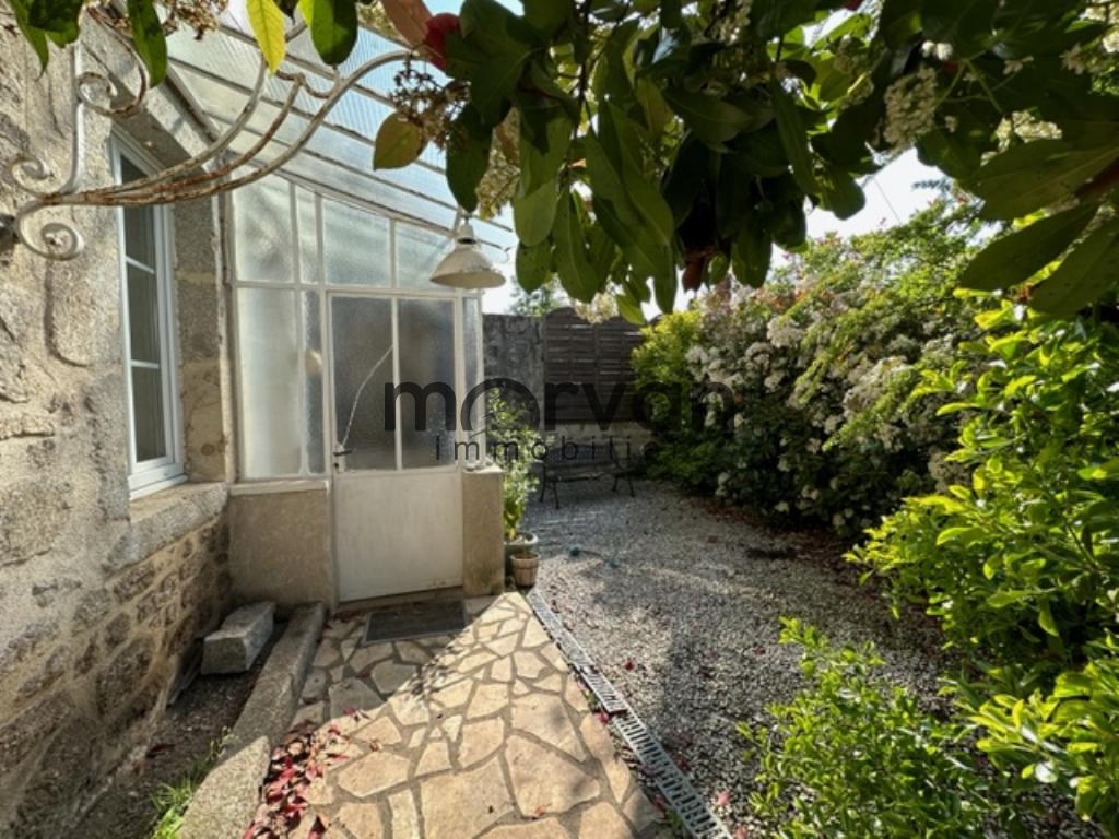 Cour gravillonnée devant, cour intérieur et jardin derrière.