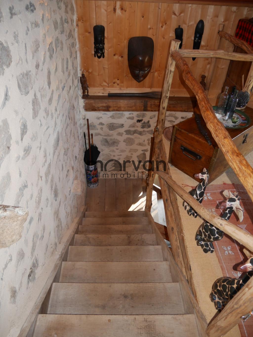 Elle est élevée en partie sur cave voûtée de 32m2. L'entrée, une salle à manger avec des tomettes, plafond à la Française et une baie vitrée avec une vue magnifique sur le Morvan.