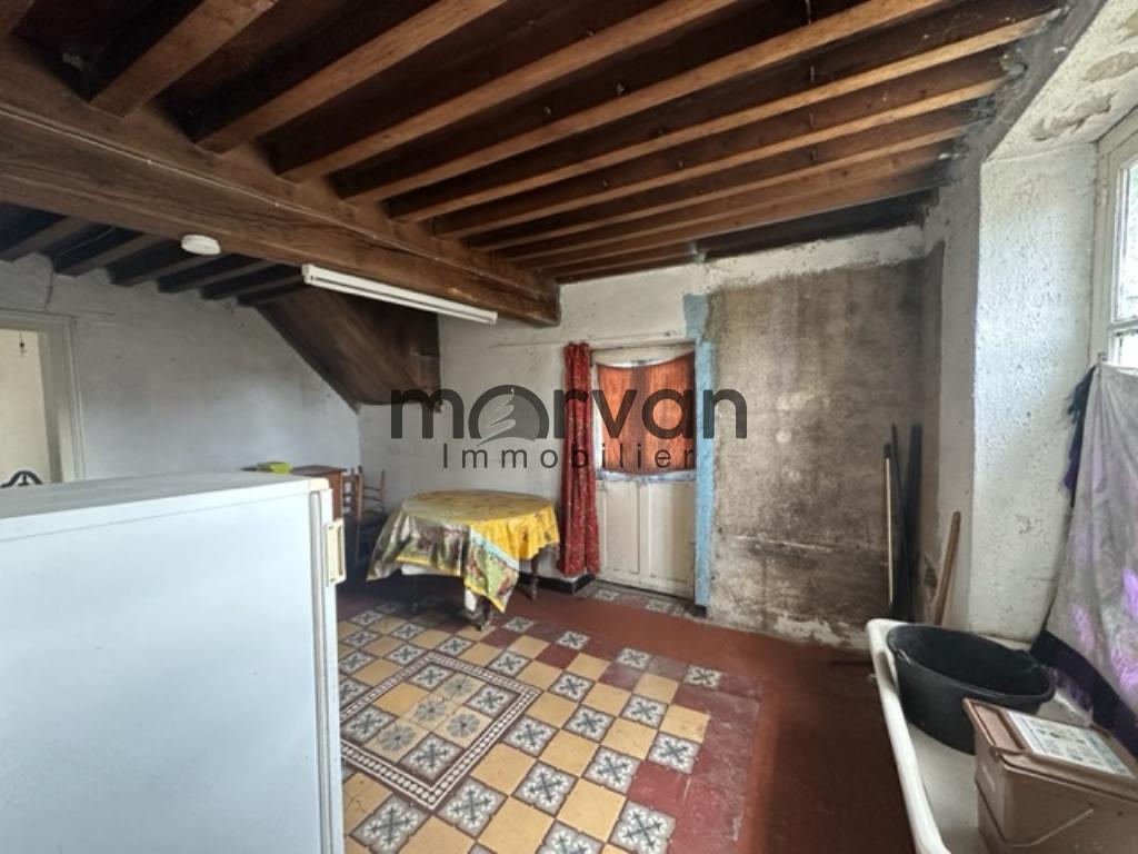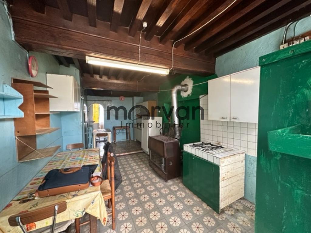 " Un corps de batiments entièrement à restaurer comprenant une maison ancienne élevée partie sur cave: deux anciennes cuisines, deux chambres, une salle d'eau WC, un dégagement.