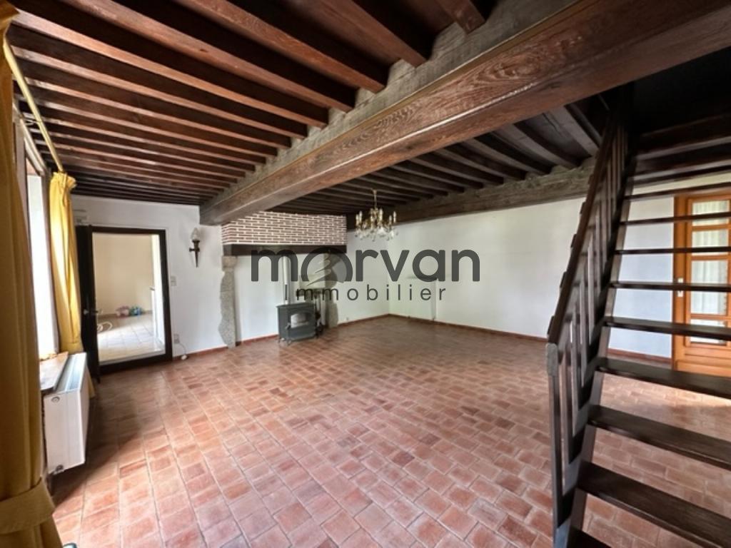 " Une maison élevée partie sur cave et garage comprenant au rez-de-jardin : une cuisine, un séjour avec cheminée (terrasse devant la cuisine et le séjour), une salle d'eau et WC séparés, une véranda de plain pied avec le jardin. Au premier étage: une belle pièce palière pouvant faire office de chambre et une chambre.