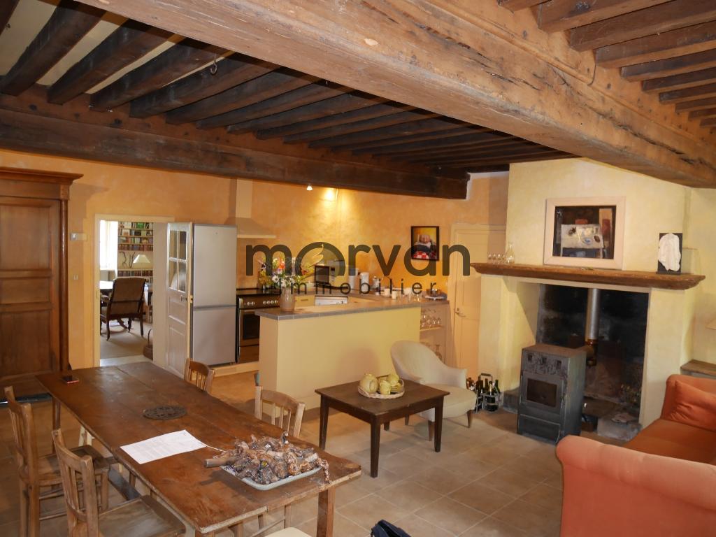 La deuxième maison a une grande pièce de vie de 40m2 avec plafond à la française, tomettes au sol, cheminée et son poêle à bois.