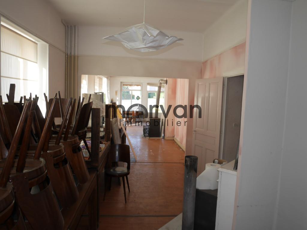 Rez de chaussée élevé partie sur cave, comprenant : une salle de bar et une salle de restauration ensemble 75m2, Cuisine de 21m2. Deux W.C, partie privative comprenant trois pièces (dont une ancienne buanderie)