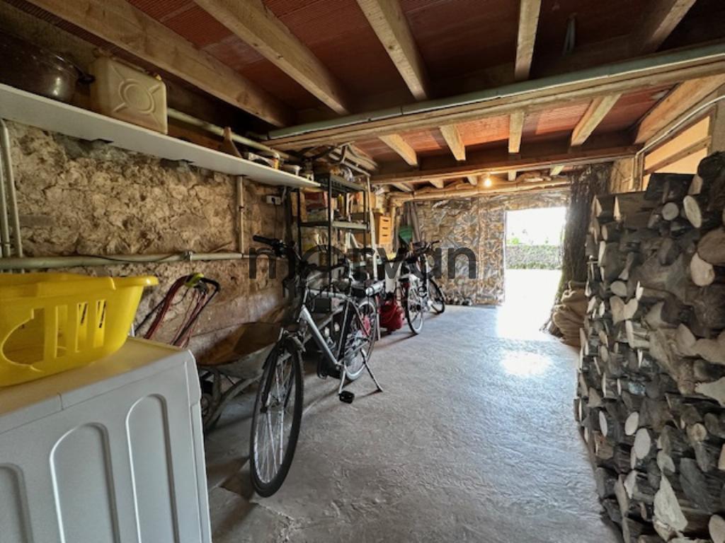 Garage avec une cuisine d'été accessible depuis le jardin, cave et chaufferie (chauffage central fuel+ cheminée équipée d'un poêle dans le salon). Cour devant la maison (sur une partie assainissment de la maison entièrement refait à neuf en 2022, jardin sur l'arrière accessible depuis la maison et depuis la cuisine d'été et verger attenant.