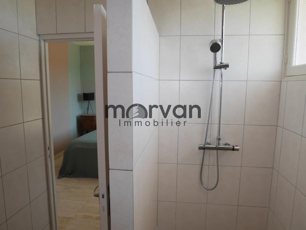 Partie habitable au rez du chaussée de 73m2 avec une suite de 51m2: entree de 5m2, donnant accès à la chambre de 35m2 et la salle d'eau de 11 m2 attenante, avec douche à l'italienne, ,W.C. et meuble avec vasque.